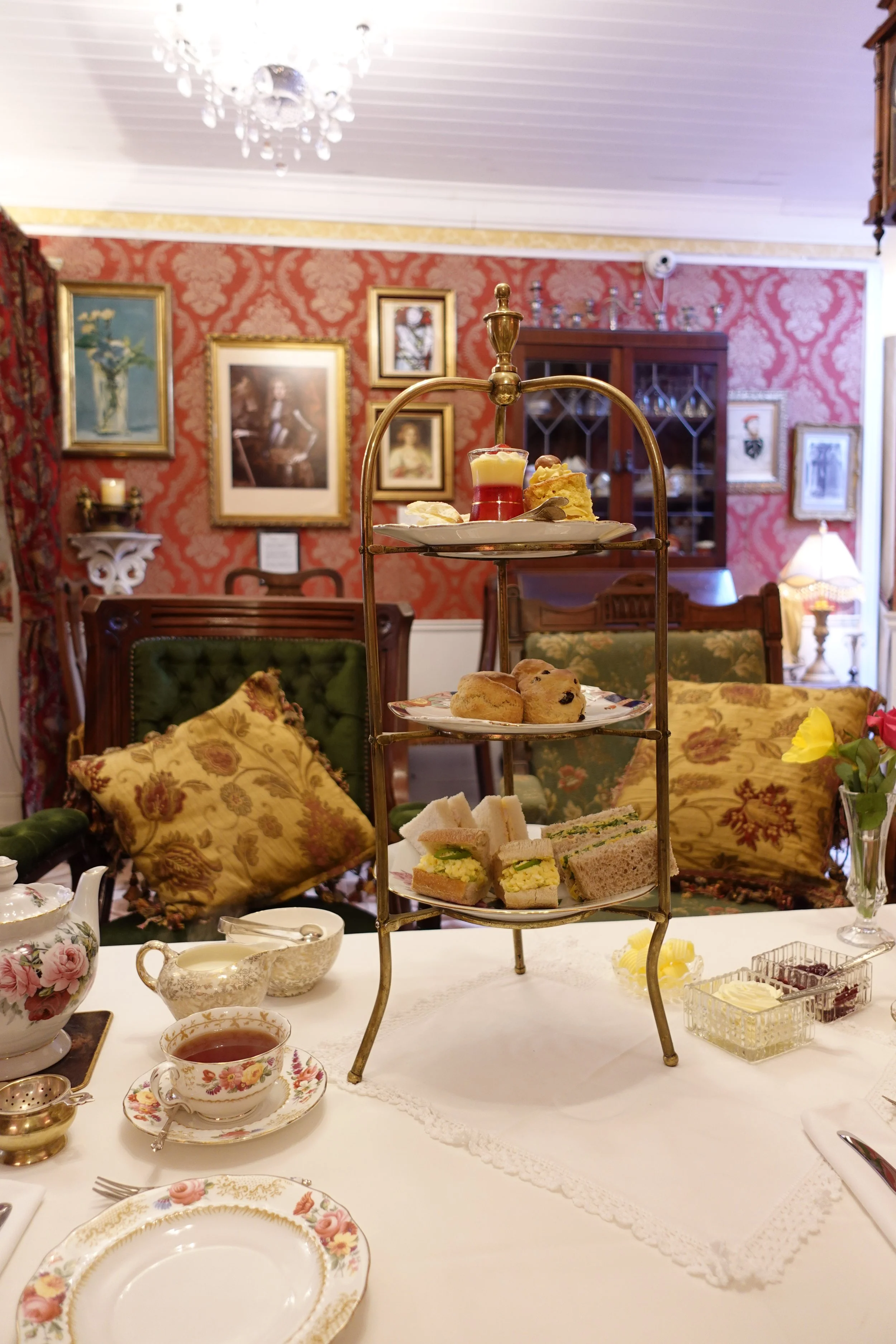 Before we sat down for afternoon tea we were brought back to the dressing room where we could choose from an impressive range of Victorian clothing, hats and accessories which we could wear to fully immerse ourselves in the Victorian aesthetic. With years and years of collecting vintage clothing and accessories, Audrey has put together the most lovely collection of authentic Victorian fashion. After lots and lots of photos and videos in our fine clothing, we then returned to reality as it was time for afternoon tea.